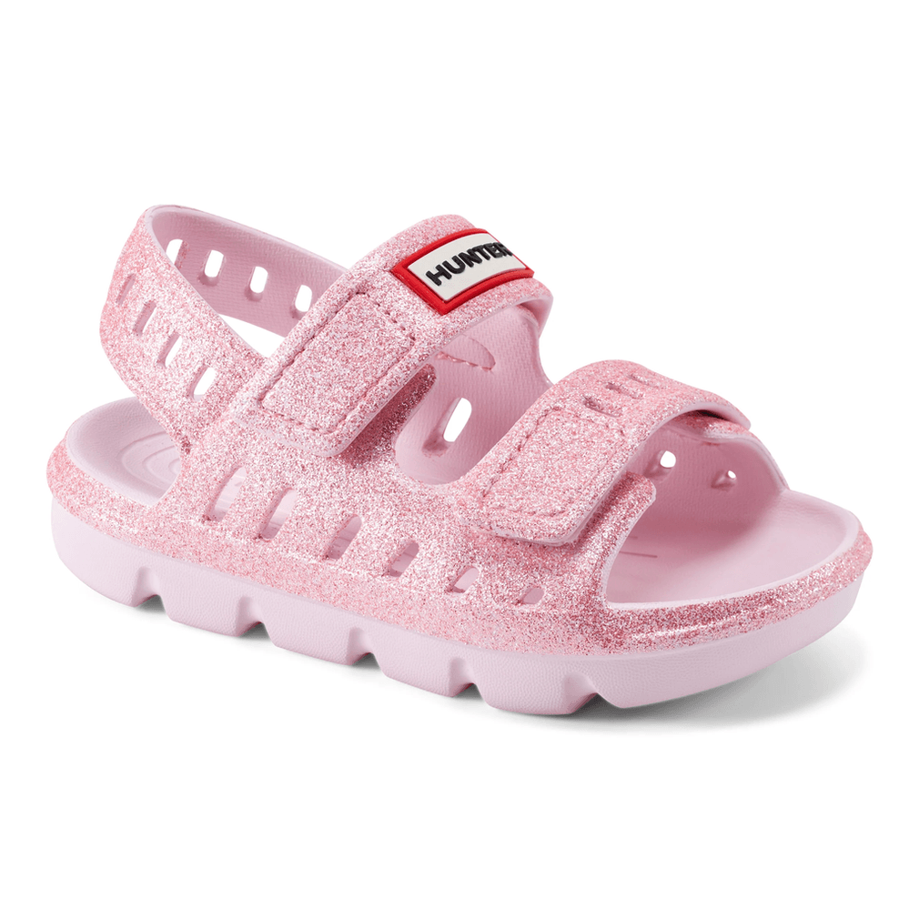 Don't miss out on the perfect blend of comfort and style. Equip your little one with the Hunter Little Kids Dottie Slingback Casual Flat Sandals in Pink Glitter today! Shop now and let their summer adventures begin!