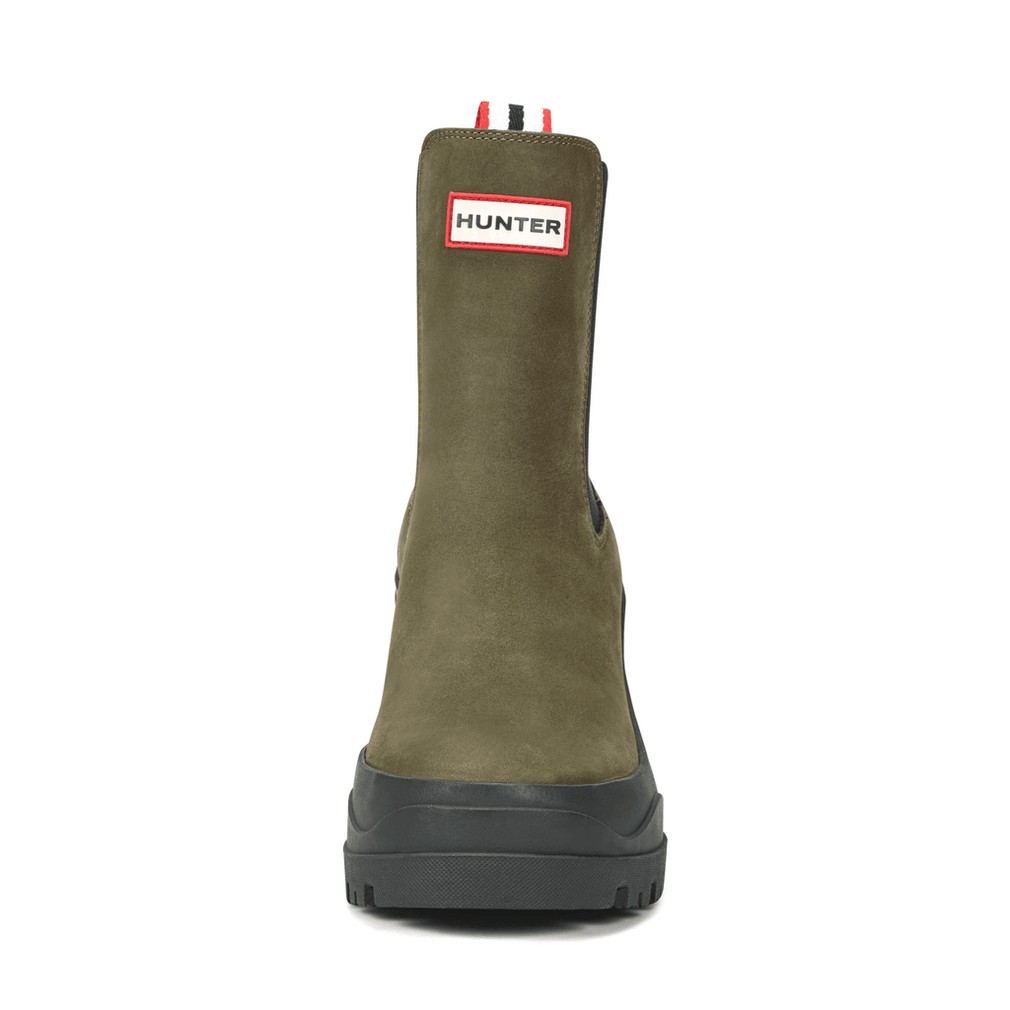 The Hunter Women's Miana Heeled Waterproof Chelsea Boots blend elegance and practicality. Crafted with a chic design, these boots feature a high block heel that enhances your silhouette while providing comfort for all-day wear. The lug-sole bottom ensures you can tackle any adventure without sacrificing style.